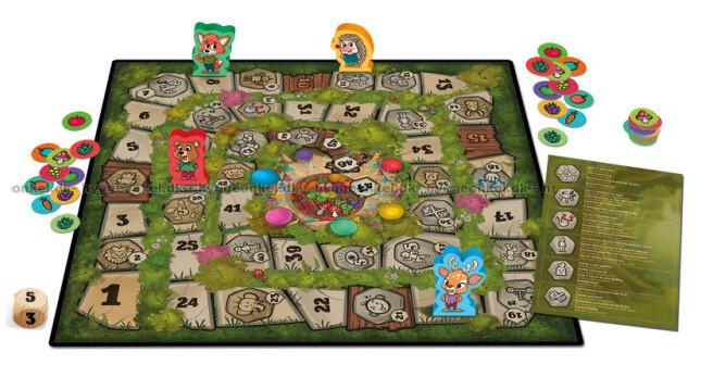 Spelet börjar när djuren – en hjort, en björn, en igelkott och en räv – ställs inför en rad spännande utmaningar som kräver både tur och skicklighet. Varje spelare ska flytta sin spelpjäs runt på brädet, där vissa rutor bjuder på roliga tester och andra ger chansen att samla matbrickor.