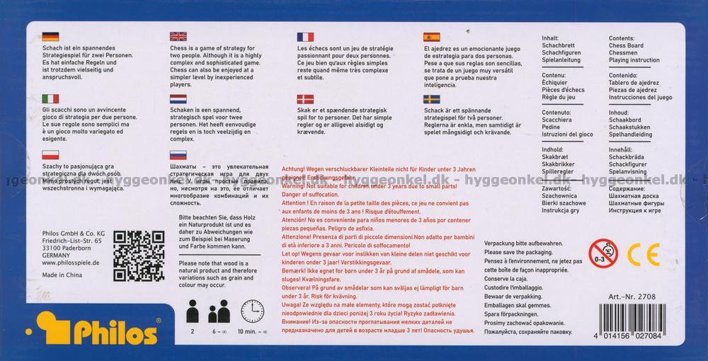 Spelet innehåller 32 träpjäser som kan förvaras inne i asken mellan spelomgångarna.