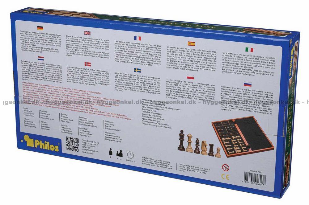 Innehåll: 32 spelpjäser som kan ligga i varsin fördjupning inne i den hopfällbara träasken.