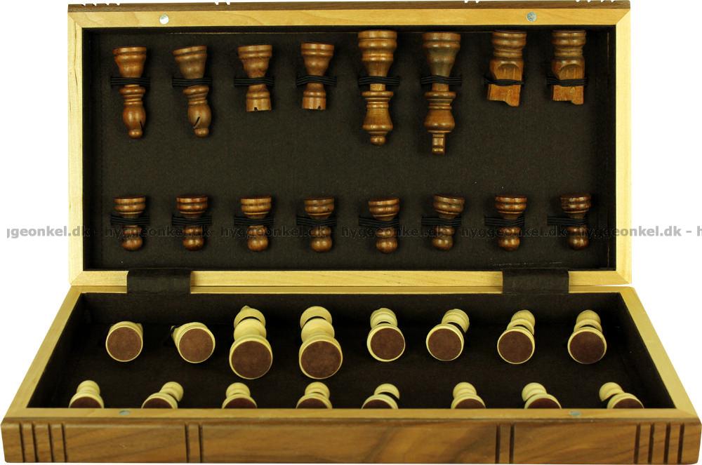Träpjäserna ligger i små fördjupningar i asken när de inte används.