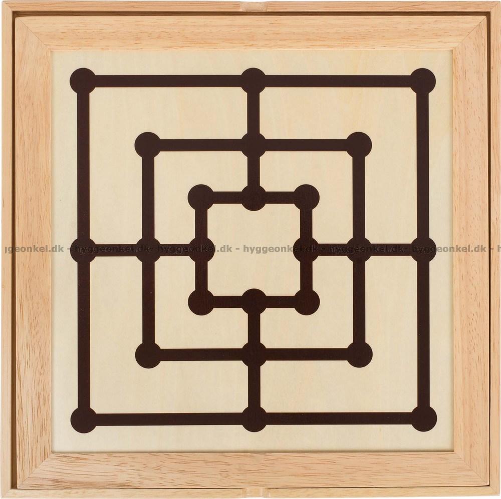 Spelbrädet är vändbart - på den ena sidan spelar du "schack"/"dam" - på den andra "kvarnspelet".