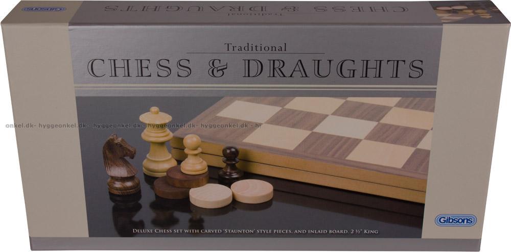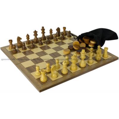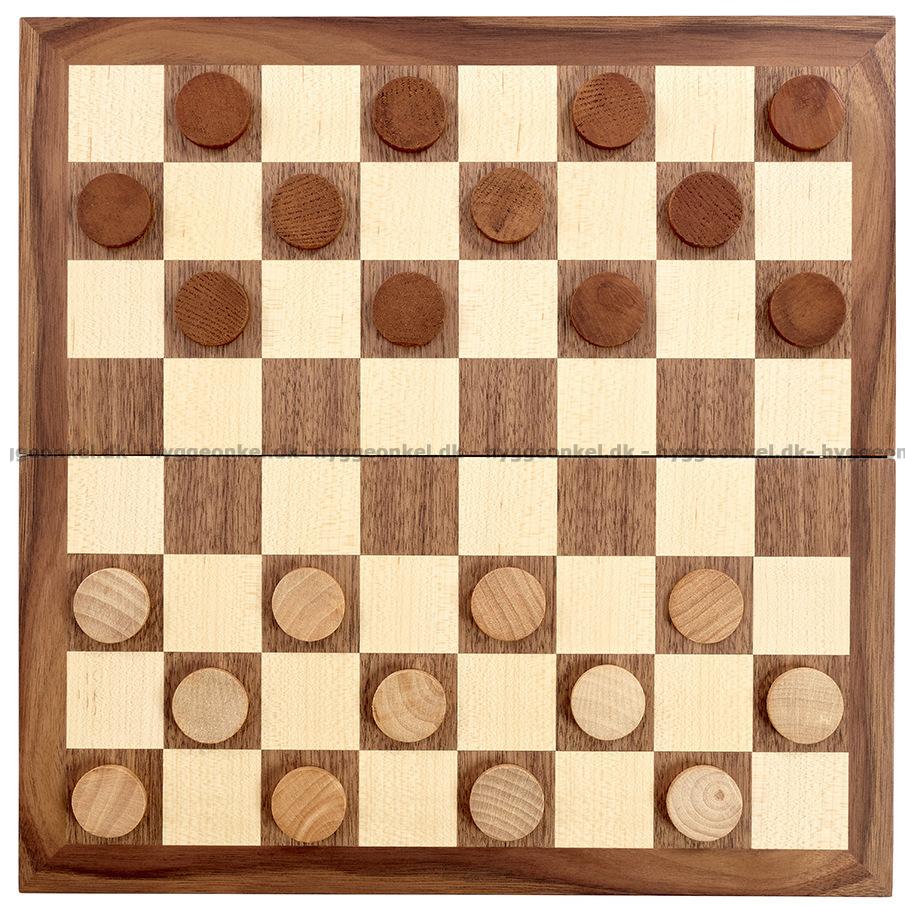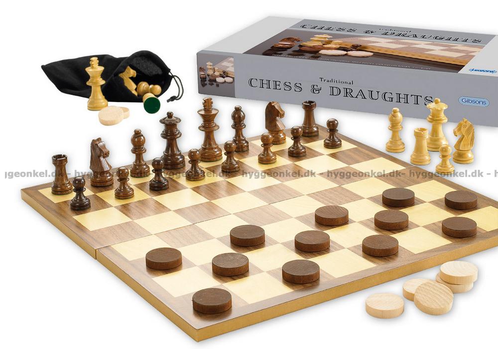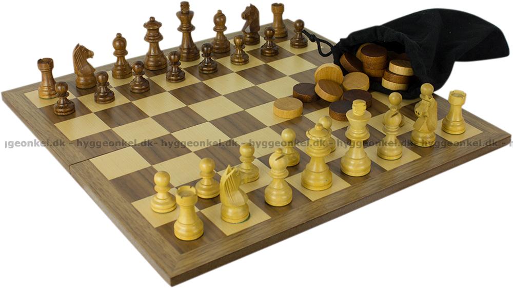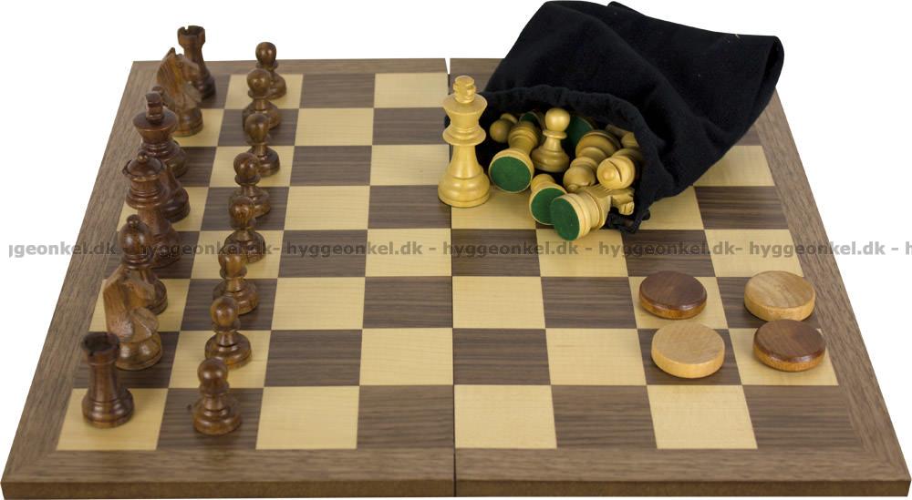 Här får du 2 spel i en ask. Du spelar schack eller dam på samma bräde.
