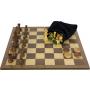 Schackpjäserna är i Staunton-stil. Kungen är 6,3 cm hög.