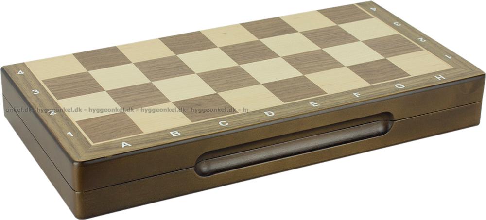 Schackbräden finns i alla möjliga storlekar och kvaliteter. Här är ett spel i ett större format i utmärkt kvalitet i trä.