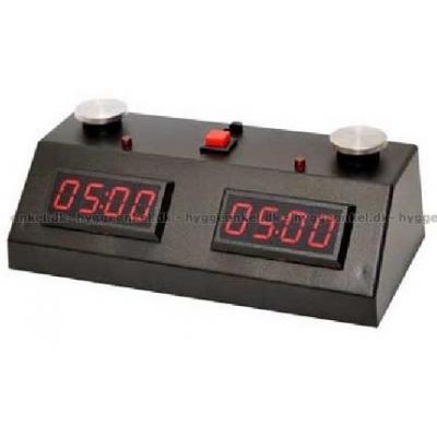 Storleken på schackklockan är 17 x 8 x 5 cm.