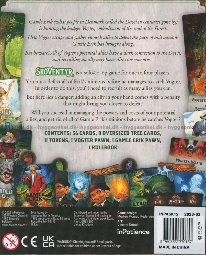 Skogen representeras av en cirkel av spelets stora trädkort. Om de två pjäserna – Gamle Erik och Väktaren – kommer till att stå på samma trädkort, är spelet förlorat. Väktaren fångas av Gamle Erik.