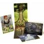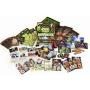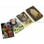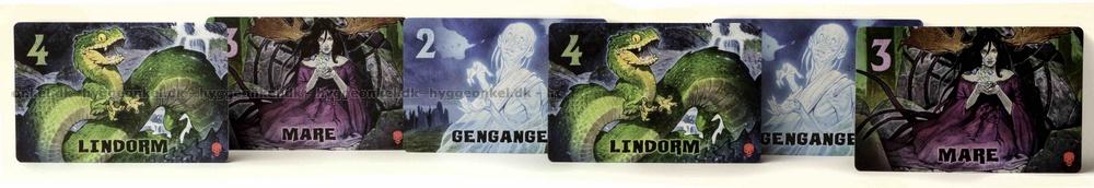 En mängd kort, marker i kartong och 2 pjäser i trä.