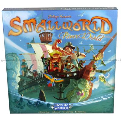 I River World finns mängder av nya komponenter till Small World. Expansionen bjuder bland annat på nya platser och nya fiender. Kontrollera hamnarna för att vinna fler poäng, använd karavellen för att nå till den andra änden av brädet, eller använd templet för att förutsäga framtiden... I varje runda ställs ni inför en speciell händelse: pirater, stormar eller isande kyla - det är inte enkelt att leva i River World.