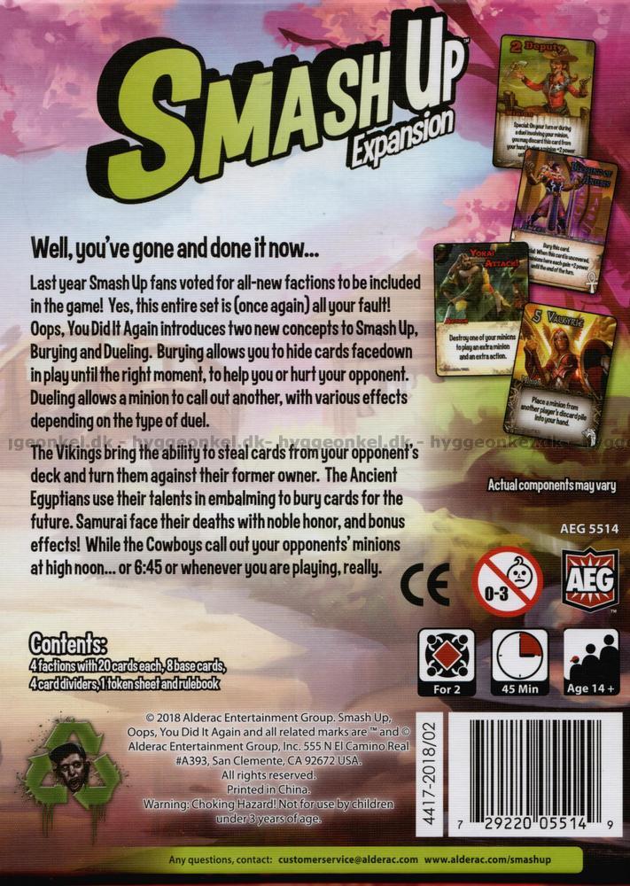 Här får du mer galenskaper i Smash Up-universumet när vikingen, cowboyen, faraon och samurajen anmäler sig för strid.