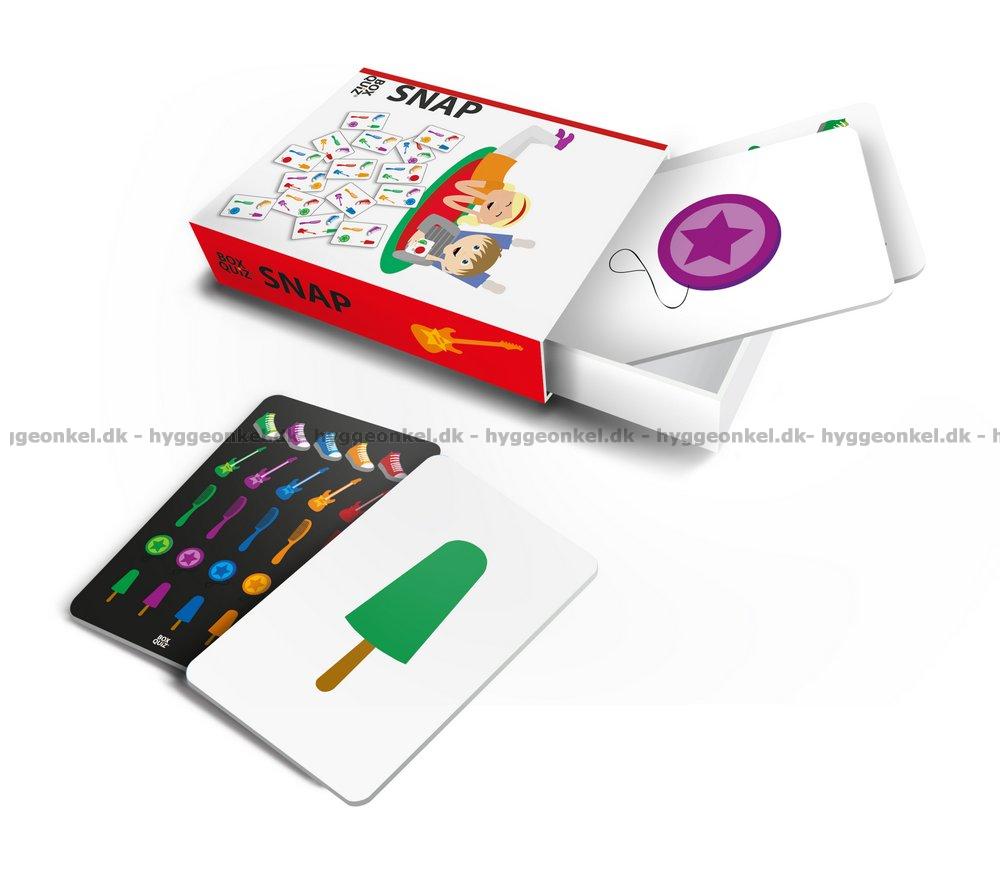 50 kort. 25 svarte SNAP-kort och 25 vita sak-kort.