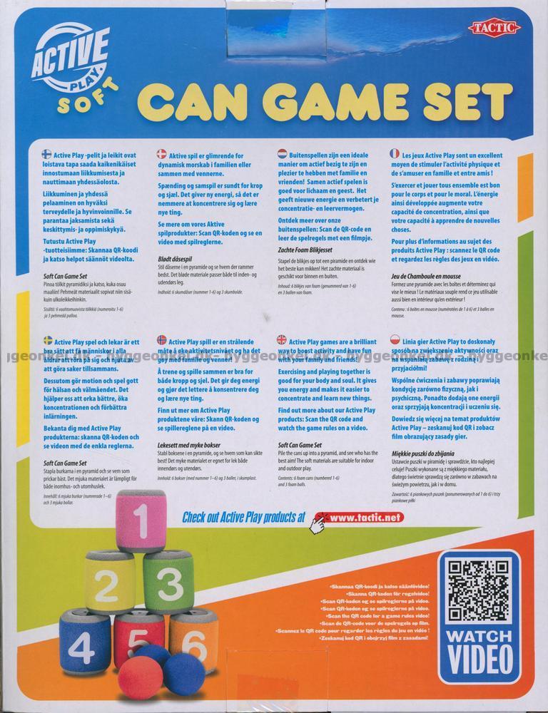 Här får du 6 mjuka burkar och 4 mjuka bollar att kasta med.