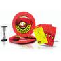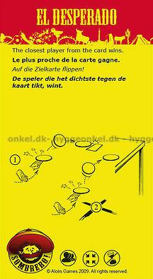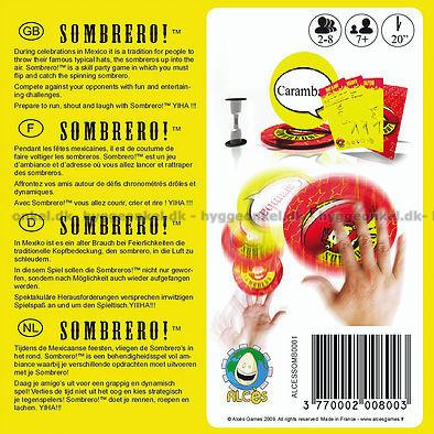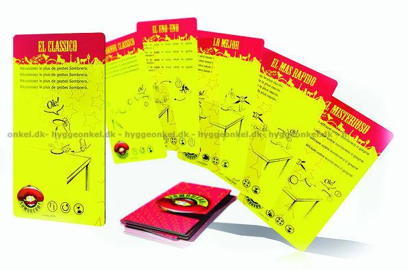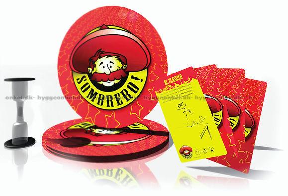 8 Sombrero-discs, 24 kort med utmaningar, 1 timglas och en tygpåse.