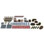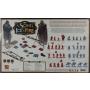 Kort, marker, tärningar och miniatyrfigurer i plast.