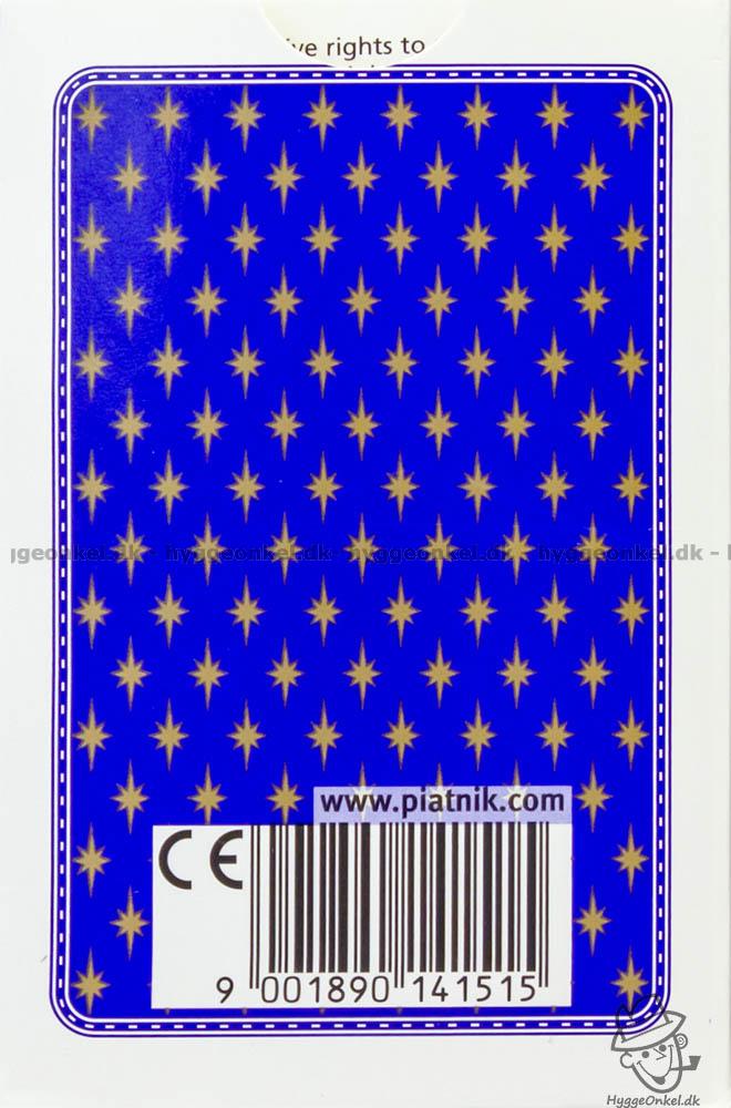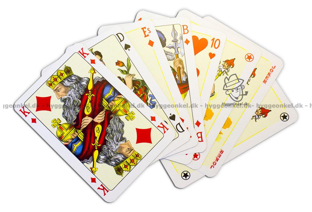 Asken innehåller ett fint set spelkort med 52 kort och tre jokrar. Det finns nummer i alla fyra hörn, så de är enkla att spela med även om man är vänsterhänt.