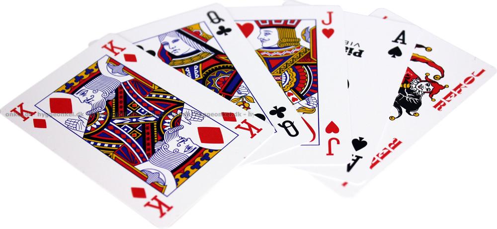 - Fina spelkort i en praktisk ask i plast