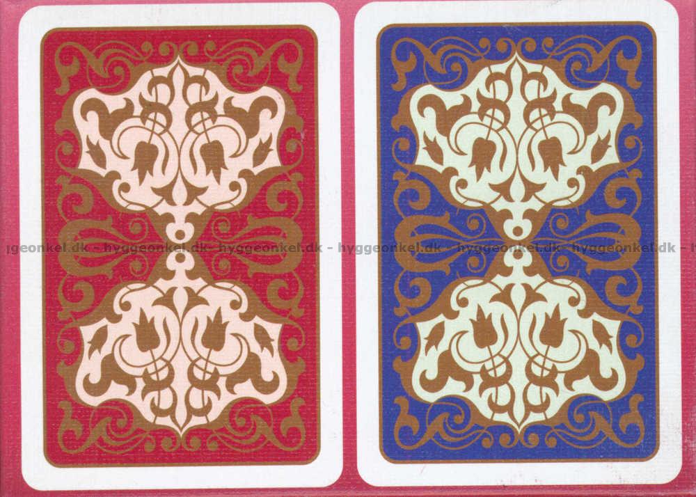 Den ena kortleken har blå bakgrund medan den andra har röd bakgrund.