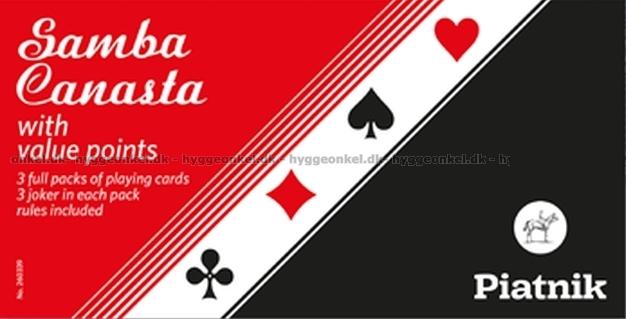 Samba Canasta är en variant av klassisk Canasta. Det går givetvis utmärkt att även spela vanliga Canasta och kortlekarna kan naturligtvis också användas till vanliga kortspel.