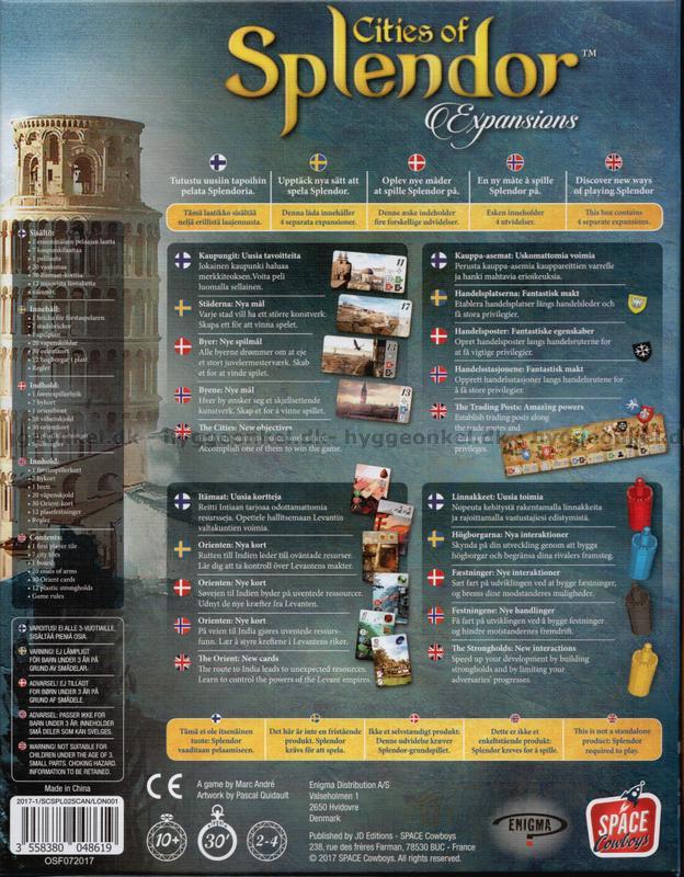 I denna box får du 4 olika expansioner till spelet Splendor. Expansionerna kan användas separat eller kombineras.