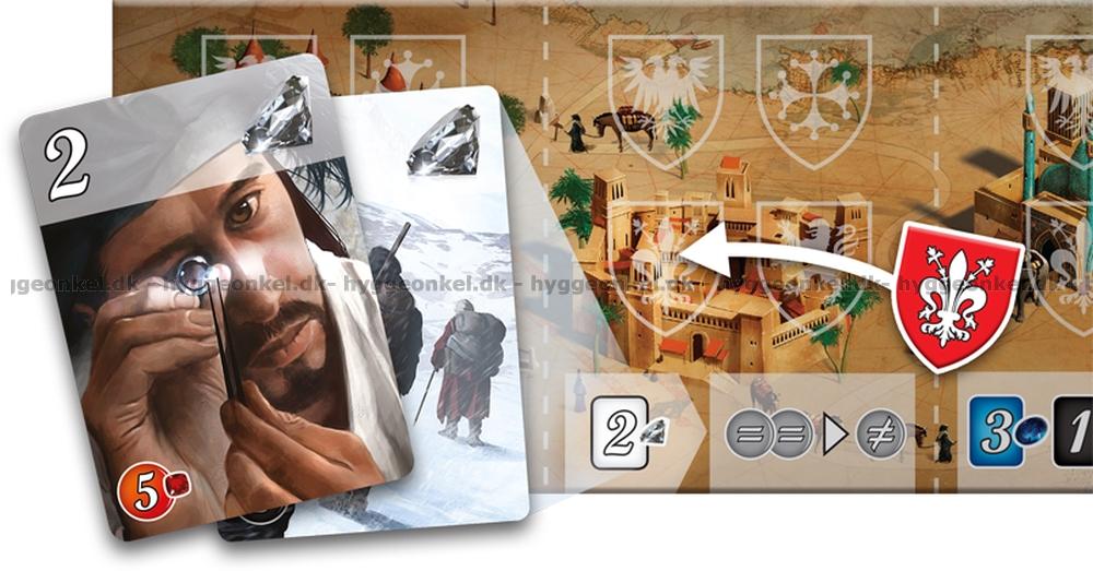 - "Trading Posts" ger dig bonusar som du kan utlösa genom att skaffa specifika utvecklingskort: fler segerpoäng från den första adelsmannen, en extra bricka när du tar två ädelstenar av samma färg, osv.