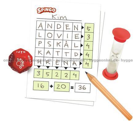 I Spingo är en tärning i absolut fokus. Tärningen visar nämligen vilka bokstäver man ska använda för att bilda ord.