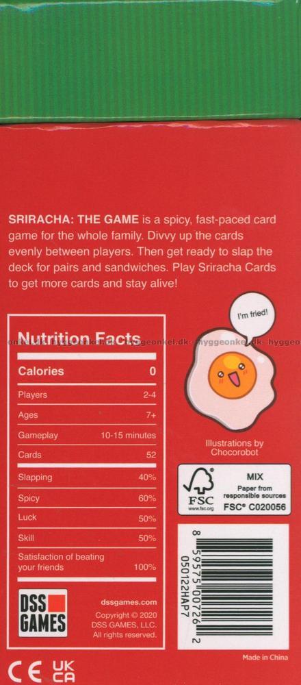 Håll ett extra öga på korten med Sriracha-flaskor. När ett sådant kort vänds upp ska nästa spelare också försöka spela ett Sriracha-kort. Om det inte lyckas får den första spelaren alla korten.