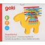 1 kamel i trä (10 x 12 x 2,5 cm) och 60 träpinnar i 4 färger (7 x 0,5 cm).