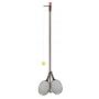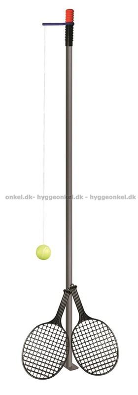 Stången, som är delad i 3, 2 racketar, 1 tennisboll förbunden med stången med ett band.