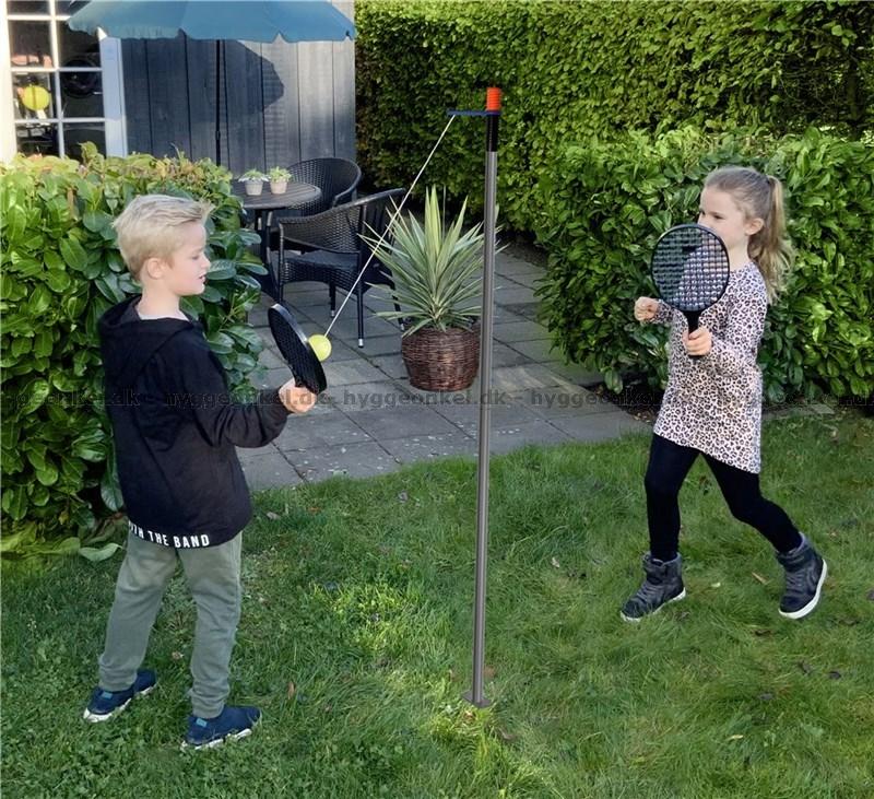 Det är roligt att spela stångtennis antingen ensam eller mot varandra.