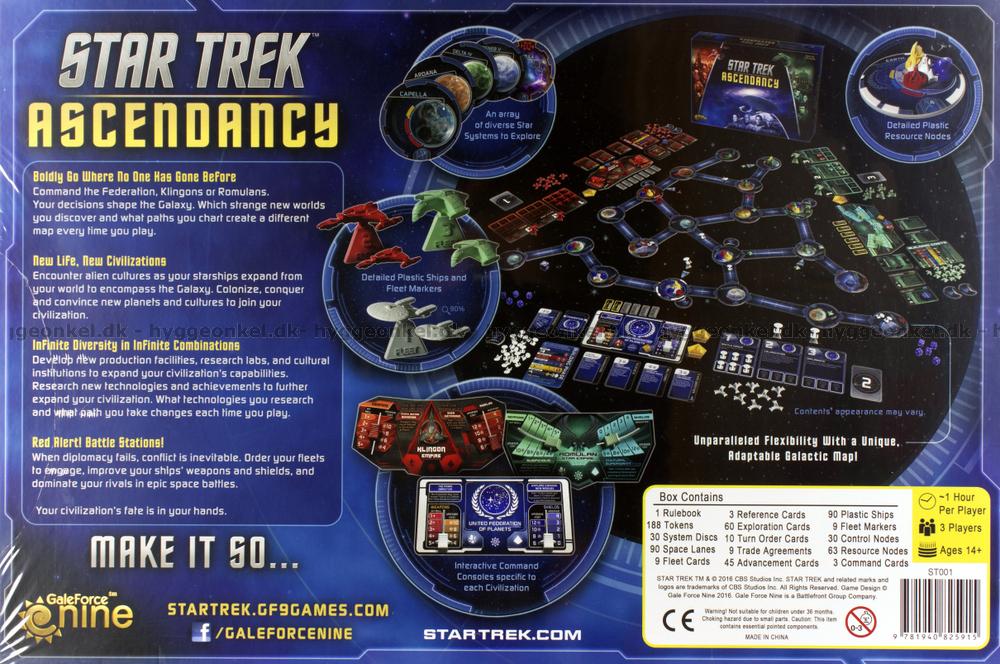 Res ut i rymden där ingen tidigare har satt sin fot. I Star Trek: Ascendancy - ett brädspel om utforskande, expansion och konflikt mellan Federationen, det klingonska imperiet och det romulanska imperiet - styr spelarna en av galaxens stora civilisationer och försöker att expandera och öka respektive civilisations inflytande.