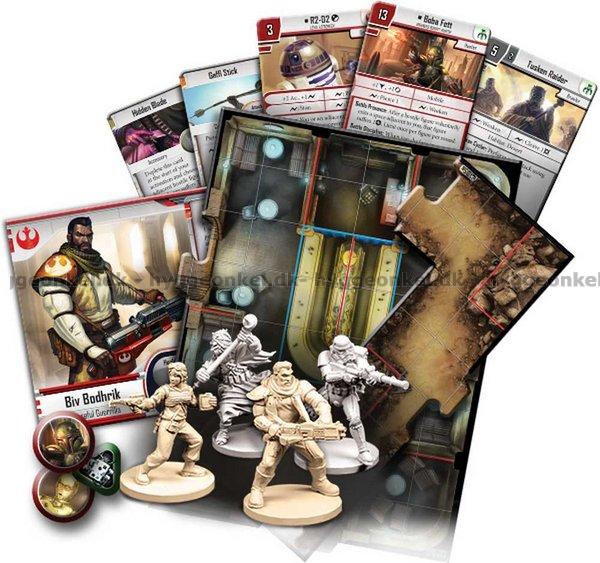 Spelet innehåller alla komponenter som behövs för att spela och har till exempel speciella miniatyrer av Luke Skywalker och Darth Vader. Det kommer löpande att utökas med nya modeller, nya kort och många nya sätt att spela.