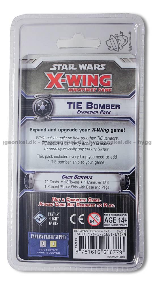 Varje TIE Bomber kan bära två torpeder, två missiler och en bomb. Expansionens fem uppgraderingskort ger dig ett stort urval av tunga vapen att välja mellan, inklusive extremt kraftfulla Proton Bombs. I paketet får du med en mycket fin miniatyr, ett manöverhjul, alla nödvändiga komponenter och fyra skickliga piloter.