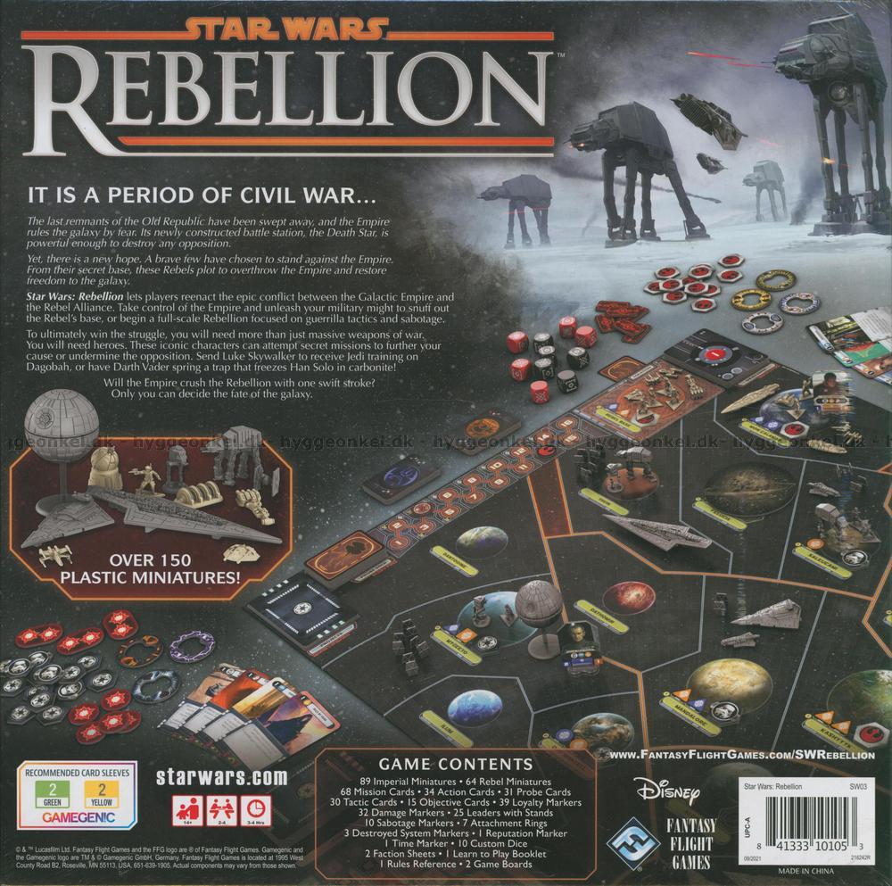 Spelet kommer med fler än 150 plastfigurer och två spelbräden med 32 av galaxens mest centrala planetsystem. Star Wars: Rebellion är det största och mest episka Star Wars-spelet som hittills har getts ut.