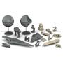 1 spelbräde (i två delar), 153 plastfigurer, 25 ledare (med hållare), 10 specialtärningar, över 170 kort.
