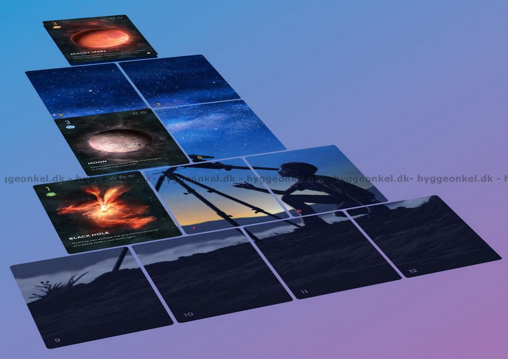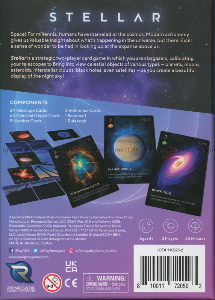 Stellar spelas över 11 rundor. Natthimlen som man ska skapa sätts ihop med hjälp av spelets kort.