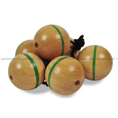 Bollarna har en diameter på 4,6 cm. Repet som förbinder dem mäter 30 cm.