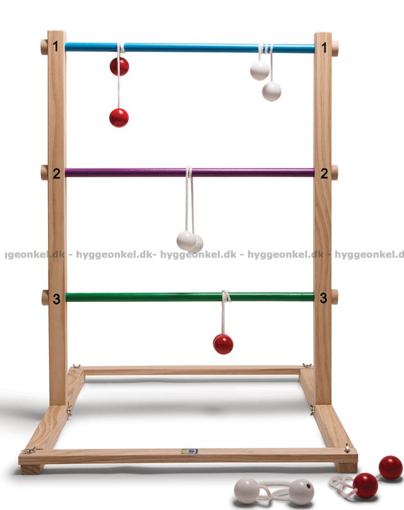 Steggolf är ett mycket roligt spel för hela familjen. Kasta bollarna och försök få dem att fastna på stegen. Beroende på vilket steg de landar på får du 1, 2 eller 3 poäng.