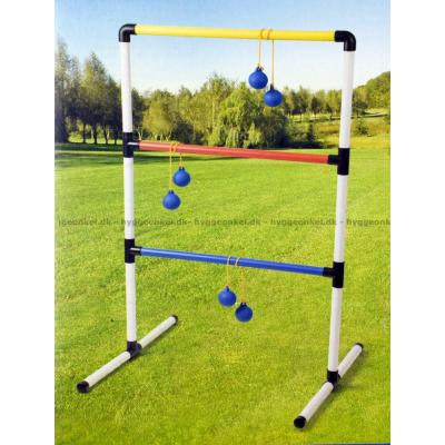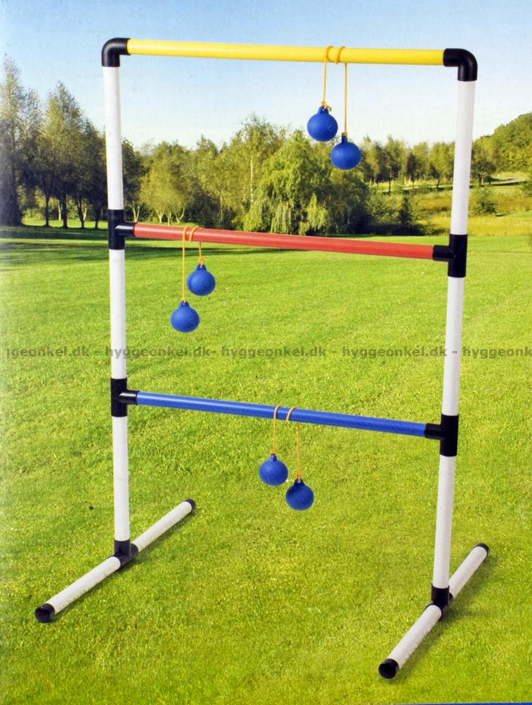 Bollarna sitter ihop två och två med ett snöre mellan dem. Det gäller att träffa stegen, så att bollarna fäster sig runt om en av pinnarna. Du får poäng för varje träff, men de olika stegpinnarna ger olika antal poäng.