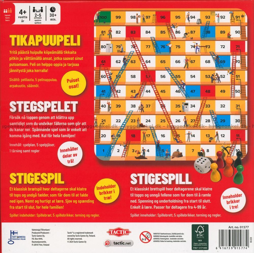 Under resans gång träffar du på stegar. Om du landar på ett blått fält får du flytta din pjäs längst upp på stegen (det är bra!). Om du i stället landar på ett rött fält, så faller du ner till den första stegpinnen (det är inte bra!).