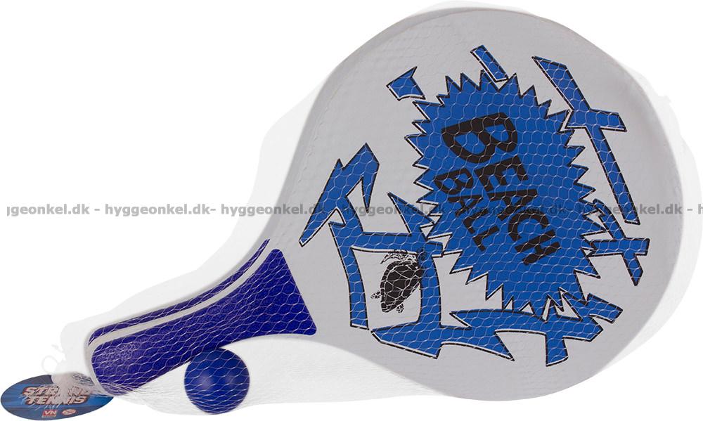 I det här setet ingår två racketar i trä och en mjuk plastboll. Det är roligt att spela strandtennis, inte bara på stranden utan även i exempelvis parken och i trädgården.