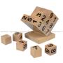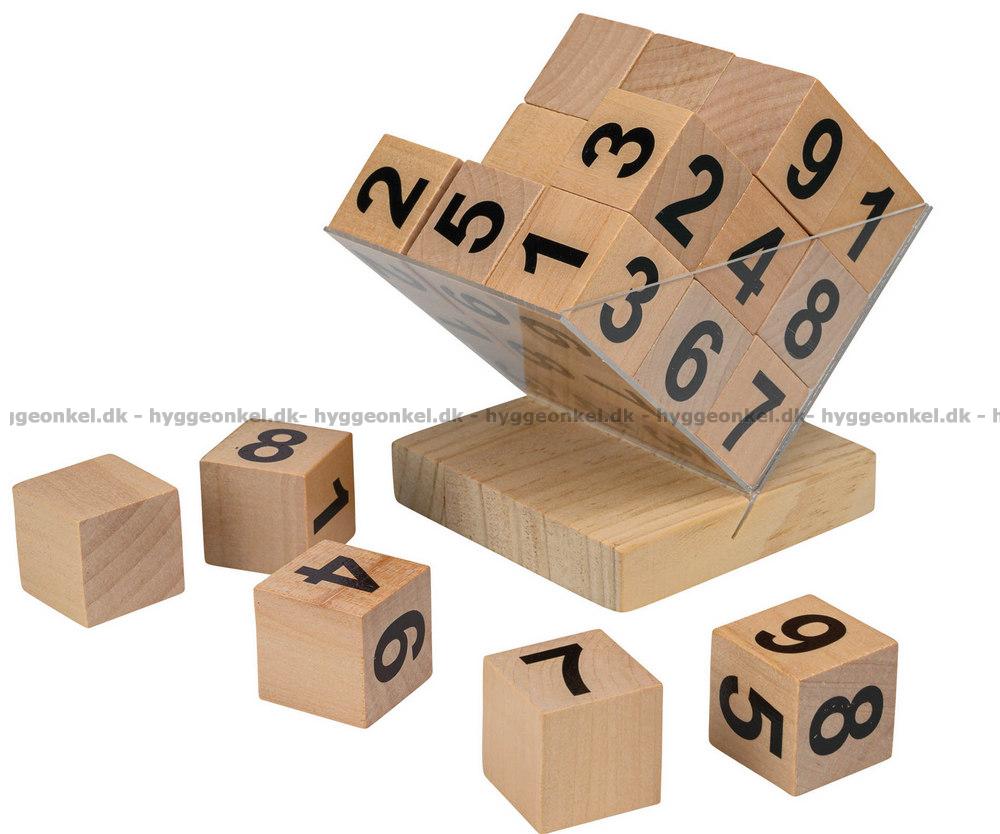 Här får du 27 kuber i trä. Varje tärning mäter 2,5 x 2,5 x 2,5 cm.