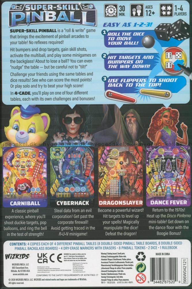 Super-Skill Pinball: 4-Cade är ett roll and write-spel med starka referenser till klassiska arkadspel - i det här fallet 4 olika slags flipperspel: Carniball, Cyberhack, Dragonslayer och Dance Fever.