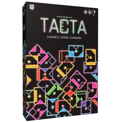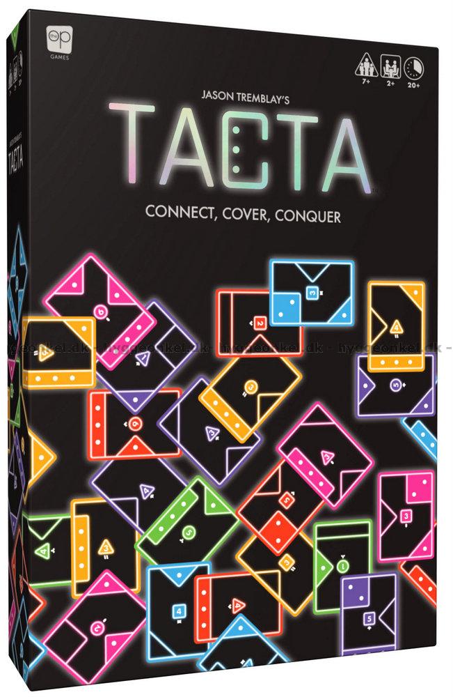 Tacta är ett färgstarkt, snabbt och taktiskt kortspel där du tävlar om att täcka dina motståndares prickar samtidigt som du försöker skydda dina egna. Varje prick räknas som en poäng, och när alla kort har spelats vinner den spelare som har flest synliga prickar på bordet.