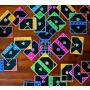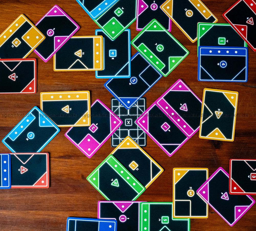 Du får vrida och vända på korten, men endast ett kort får spelas åt gången, och placeringen måste vara exakt – om formen inte passar räknas det inte. Det är visuellt och intuitivt, men rymmer ändå massor av strategi och eftertanke.