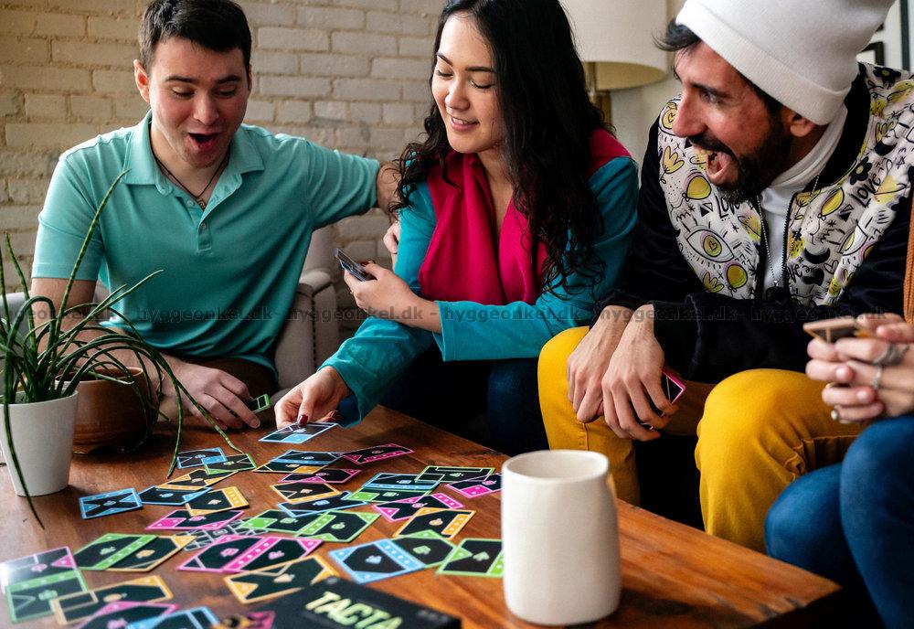 När du tror att du inte har fler giltiga drag får du lägga kortet var som helst – men det kan få konsekvenser för din poäng. Tacta kan spelas i både vanliga och mer hektiska varianter, och oavsett vilken version du väljer är det ett spel som kombinerar tempo, taktik och en glimt i ögat.