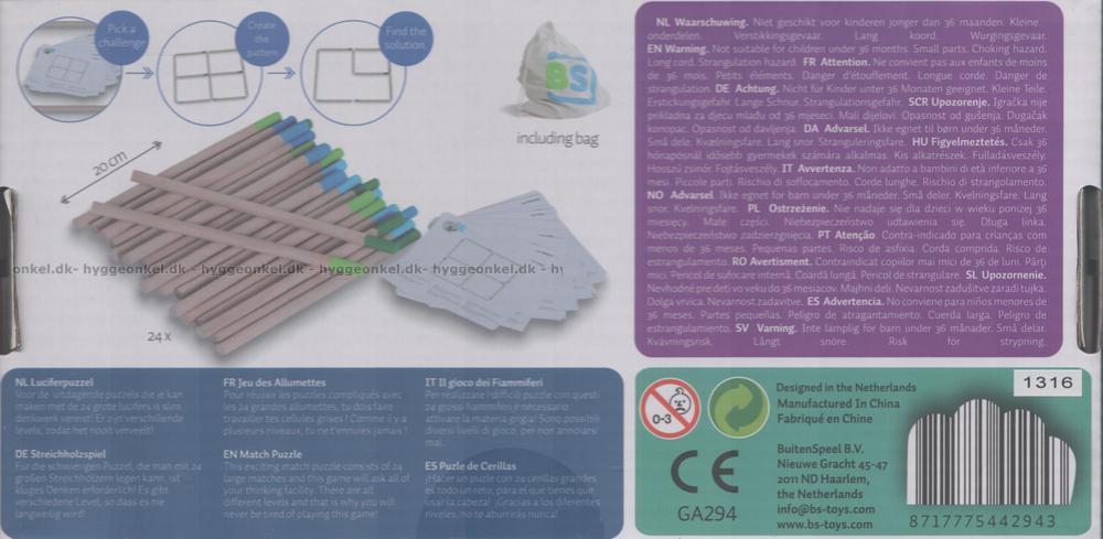 24 tändstickor i trä (som inte kan tändas!). Tändstickorna mäter 20 cm.