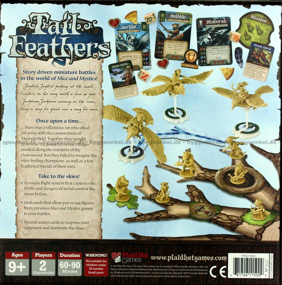 - Allt du behöver! Tail Feathers är tillräckligt innehållsrikt för att du ska kunna spela spännande scenarier, samt kort som låter dig använda dina Mice and Mystics-figurer som landtrupper.
