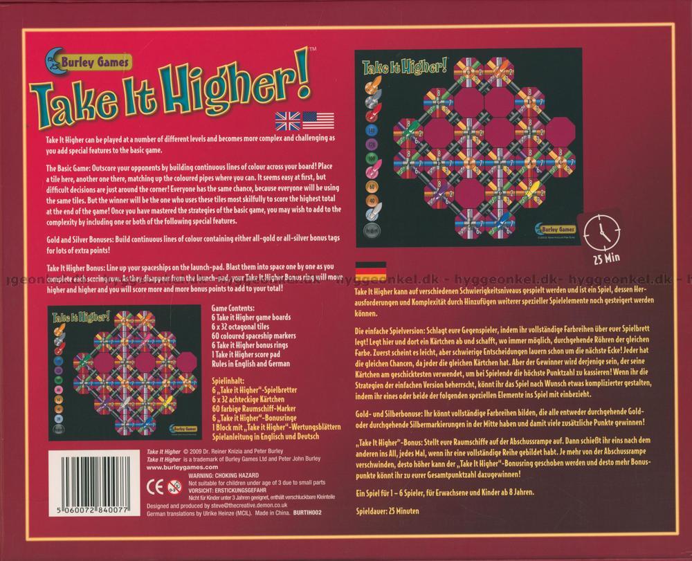 Take It Higher! tar utgångspunkt i föregångaren "Take It Easy", så spelidén är fortfarande att bygga sammanhängande rör med samma tal och färg som går igen genom hela spelbrädet.