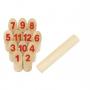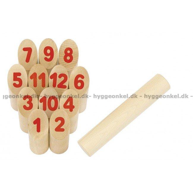 1 kastpinne (24 cm hög och 4,5 cm i diameter) och 12 numrerade talkubbar (14,5 cm höga och 4,5 cm i diameter).