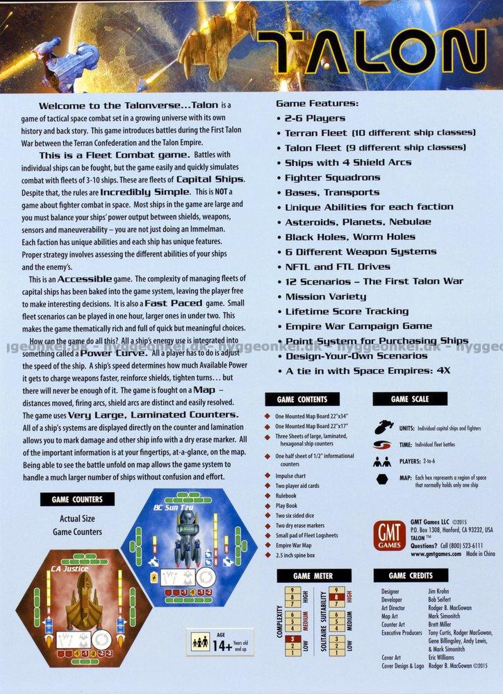 Talon is a game of tactical space combat set in a growing universe with its own history and back story. This game introduces battles during the First Talon War between the Terran Confederation and the Talon Empire.
