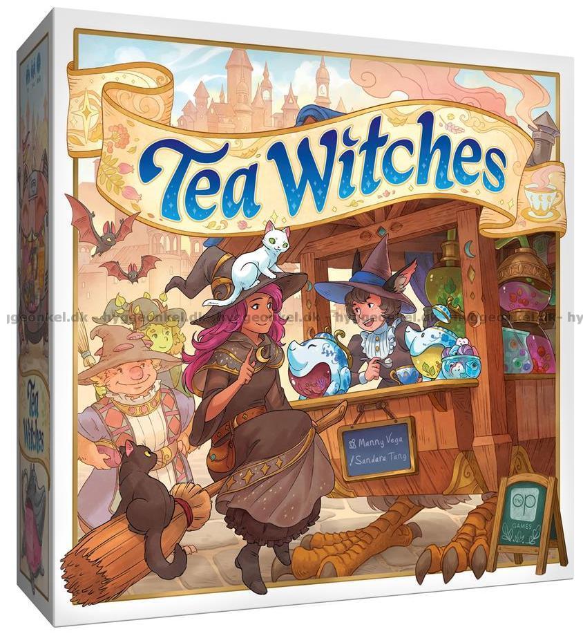 I Tea Witches tar ni rollen som te-häxor under den magiska Teaquinox-mässan. Under fyra dagar tävlar ni om att uppnå så mycket prestige som möjligt genom att locka lojala häxor, brygga och servera te, genomföra takeaway-beställningar och bygga ut er egen tebod i stadens centrum. Varje dag är uppdelad i tre faser, där ni först kallar på häxor från er personliga kortlek, därefter rör er runt i staden med era te-hjälpare för att samla ingredienser och utföra handlingar, och till sist förbereder boden för nästa dag.